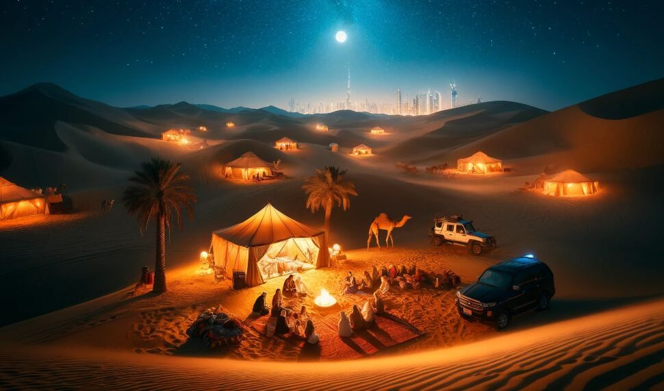 • Activities: Photoshoots in the sunset, dune bashing, camel riding, Barbeque dinner, henna painting, and live shows.